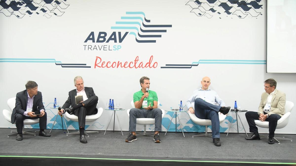 Gervasio Tanabe (Abracorp), Edmar Bull (Abav-SP | Aviesp) e Fernando Santos (Abav-SP | Aviesp), nas pontas, mediaram painel com Paulo Henrique Pires, da Localiza, e Jamyl Jarrus, da Movida