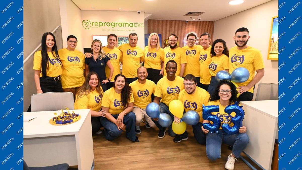 A CVC celebra 53 anos de história hoje (28) e, para celebrar a data, os líderes da operadora visitaram diversas lojas na região metropolitana de São Paulo. Emerson Belan, vice-presidente de Vendas e Marketing do B2C da CVC Corp, e Vivi Pio, diretora de Vendas para Franquias da CVC, estiveram presentes na loja do shopping Itaquera, em São Paulo, uma das franquias visitadas.