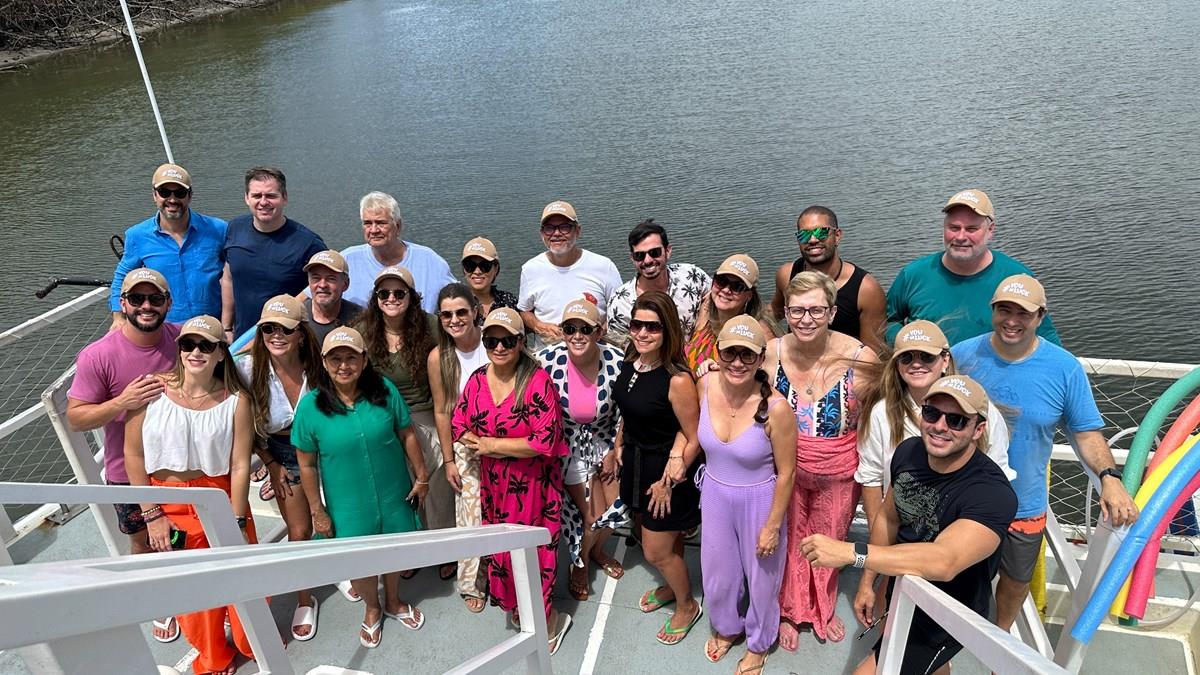 ARACAJU – O passeio de catamarã pelo rio Vaza-Barris é um dos mais típicos de Aracaju, com direito a paradas para banho (incluindo a Ilha dos Namorados, já no encontro do rio com o mar) e almoço no beach club Prainha, onde os maiores vendedores da Luck Receptivo tiveram a experiência típica e deliciosa de comer caranguejo como um local. Teve até aula de como destrinchar o caranguejo, uma atividade que o nordestino em geral e o aracajuano em especial ama fazer na praia.