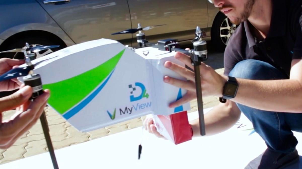 O My View D4 utiliza uma aeronave especialmente desenvolvida pela startup, ao longo de oito meses de pesquisa, criação, prototipação e testes. O objetivo do projeto inédito é iniciar a entrega comercial regular de produtos por drones autônomos, para que o serviço seja logo regulamentado no Brasil.