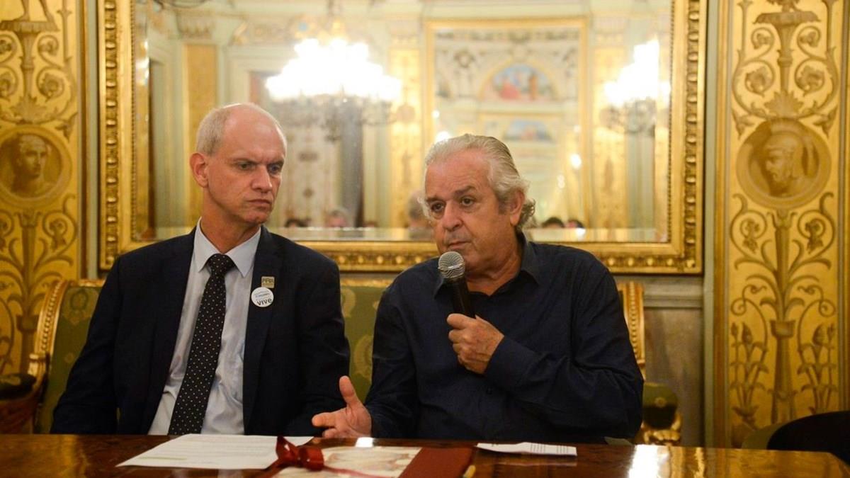 Alexandre Kellner, do Museu Nacional, ao lado do presidente do Ibram, Paulo Amaral