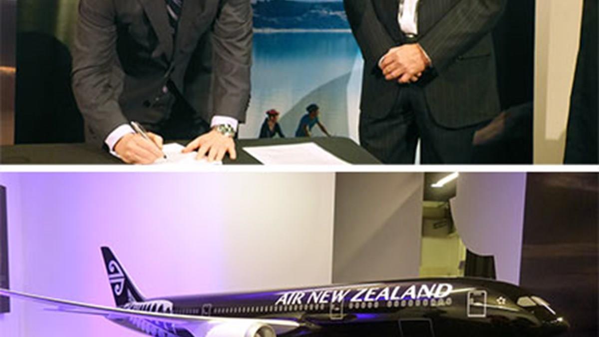 Na ocasião, o presidente da Air New Zealand, Christopher Luxon, apresentou o mock-up do primeiro Boeing 787-9 que a companhia recebe em julho. A aeronave será a primeira a receber a nova pintura, com a cor negra na maior parte da fuselagem, exceto as asas, que será adotada por parte da frota da áerea neo-zelandesa. “Em julho receberemos o primeiro de dez Boeing 787-9 Dreamliners, com 20% mais eficiência de combustível”, disse Luxon, destacando que aeronave será utilizada na rota Auckland-Perth, na Austrália, a partir de 15 de outubro, e os novos aviões do modelo voarão entre Auckland e Tóquio e Xangai.