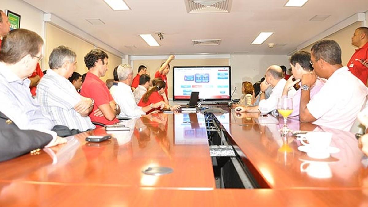 O presidente da Tam, Líbano Barroso, o vice-presidente comercial e de Planejamento, Paulo Castello Branco, e diretroes como Jualiana Kfouri, de TI, e Klaus Kühnast, de Vendas, receberam esta manhã, na sede da empresa, os 17 maiores clienets do País
