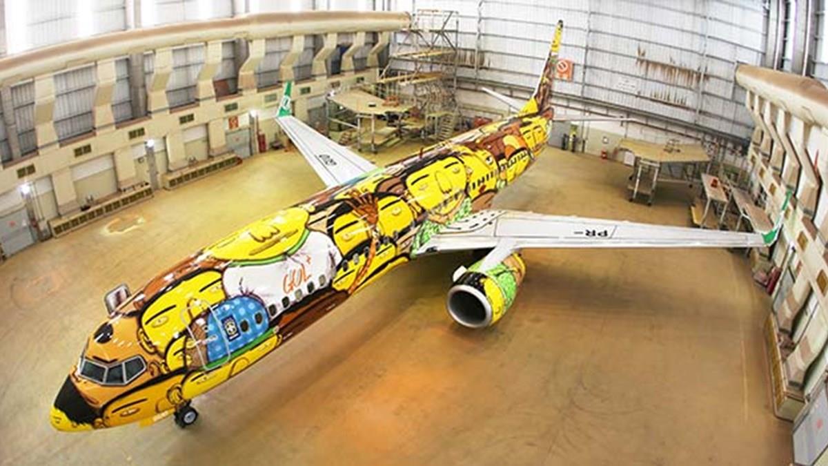 Gol mostra avião da seleção e pintura de Osgemeos