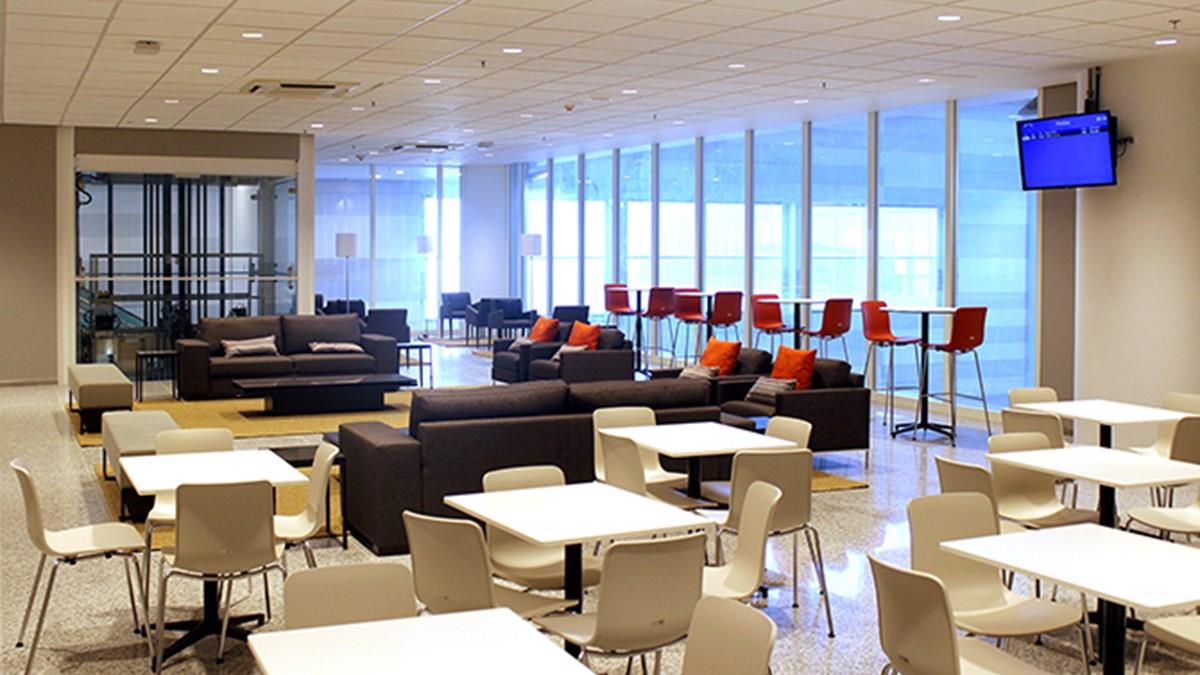 Com 270 m², a sala possui recepcionistas bilíngues, internet wi-fi, dois televisores, TV à cabo e ambiente com mesas e cadeiras para refeições. Além disso, disponibiliza ambiente com sofás e poltronas, buffet com variedade de alimentos quentes e frios e painéis informativos de voos.