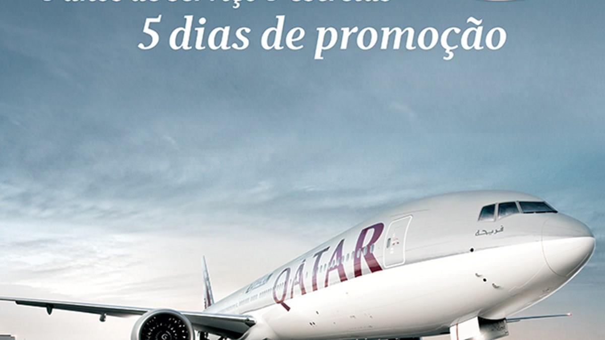 Comemorando cinco anos de operações no Brasil e o prêmio Skytrax como melhor companhia aérea do mundo, a Qatar Airways realiza uma semana de promoções no Brasil. De 22 a 26 de junho (de hoje a sexta-feira), a empresa coloca no ar tarifas promocionais e as viagens devem ser feitas entre 1º de setembro até 31 de março de 2016 (exceto entre 11 de dezembro e 22 de janeiro, data de black-out).