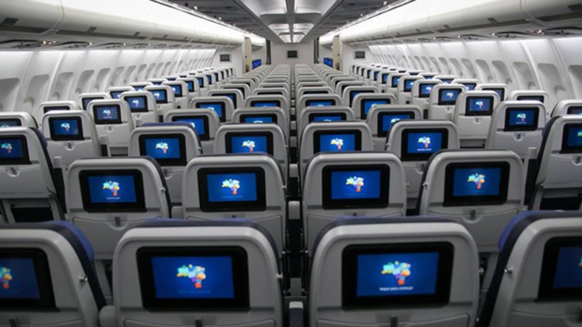 Em sua página oficial no Facebook, a companhia aérea brasileira divulgou fotos do interior de avião com o tradicional logotipo da empresa.