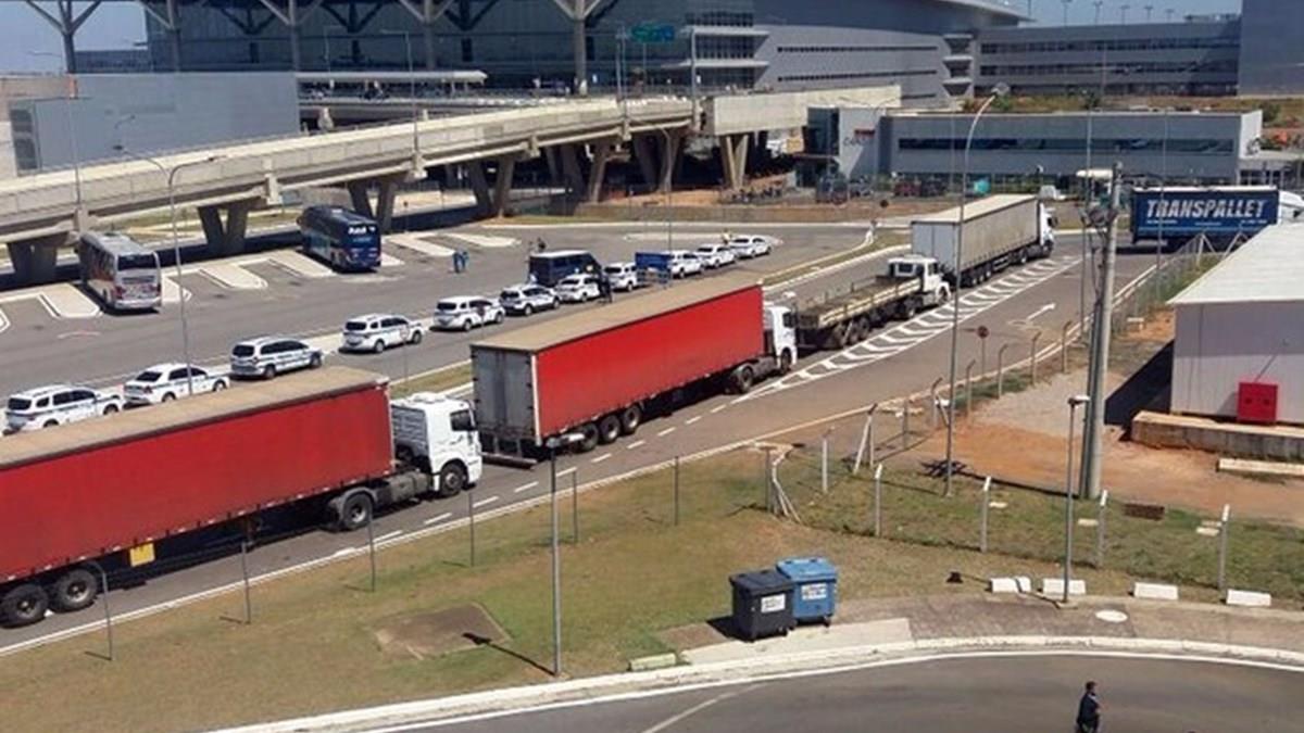 Fila de caminhões em Viracopos na manhã de hoje