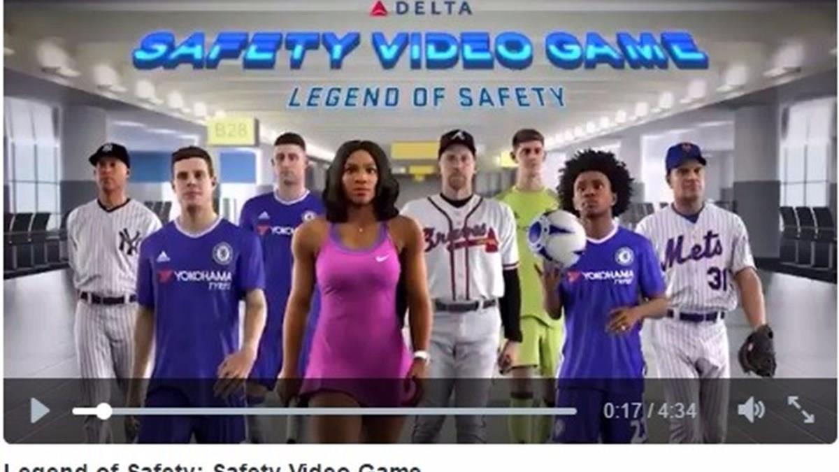 Inspirado em um jogo de vídeo game, o novo vídeo de segurança da Delta Air Lines está recheado de atletas, entre eles o meio atacante da seleção brasileira e do Chelsea, o jogador Willian. O novo filme, que passa a ser exibido em voos da companhia norte-ame