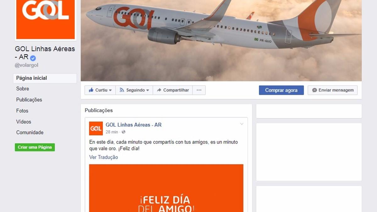 Já nas outras três redes sociais, os perfis da Gol foram criados especificamente para argentinos, com todas postagens em espanhol.
