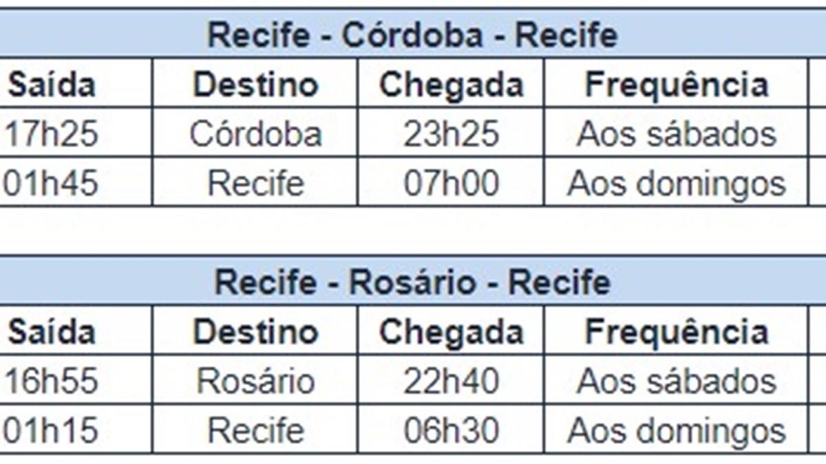 Veja abaixo os horários previstos - serão solicitados às autoridades e órgãos reguladores - das novas rotas para a Argentina. As demais operações ainda não têm horários definidos.