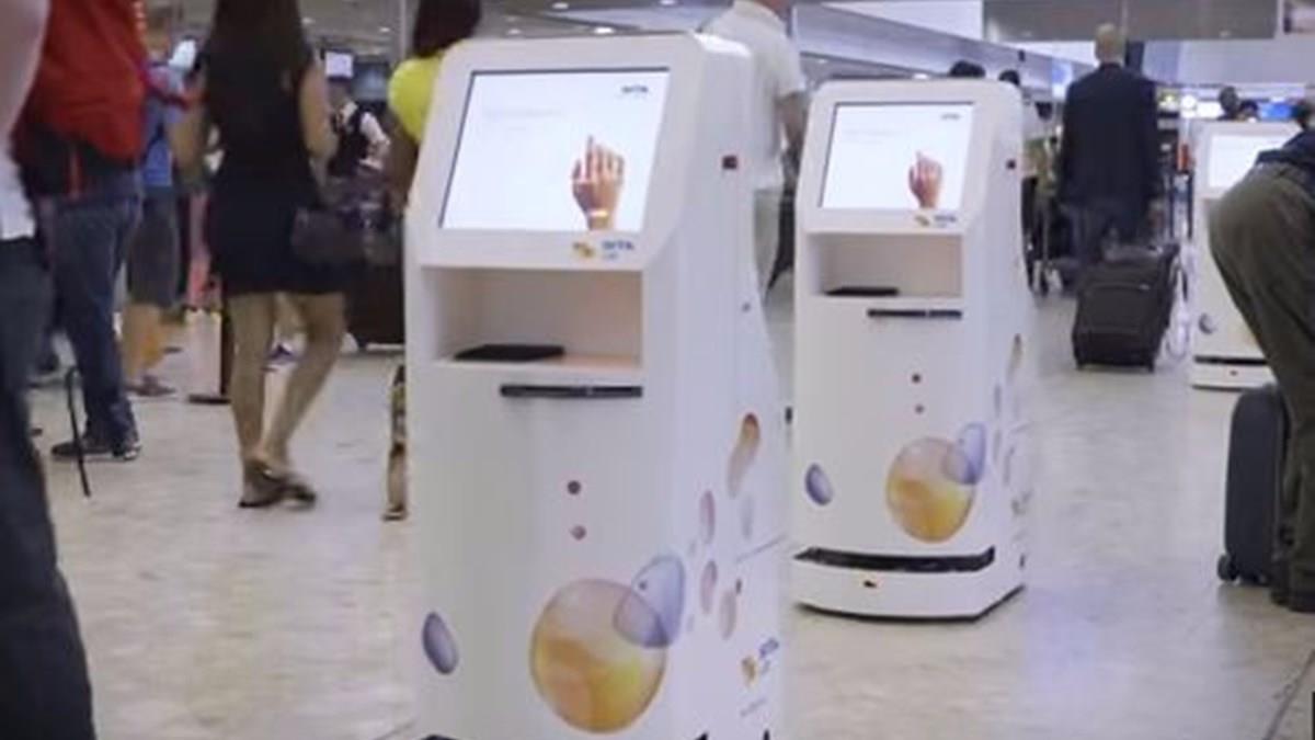 Robô-quiosque da Sita se locomove por meio de inteligência artificial no aeroporto; veja vídeo