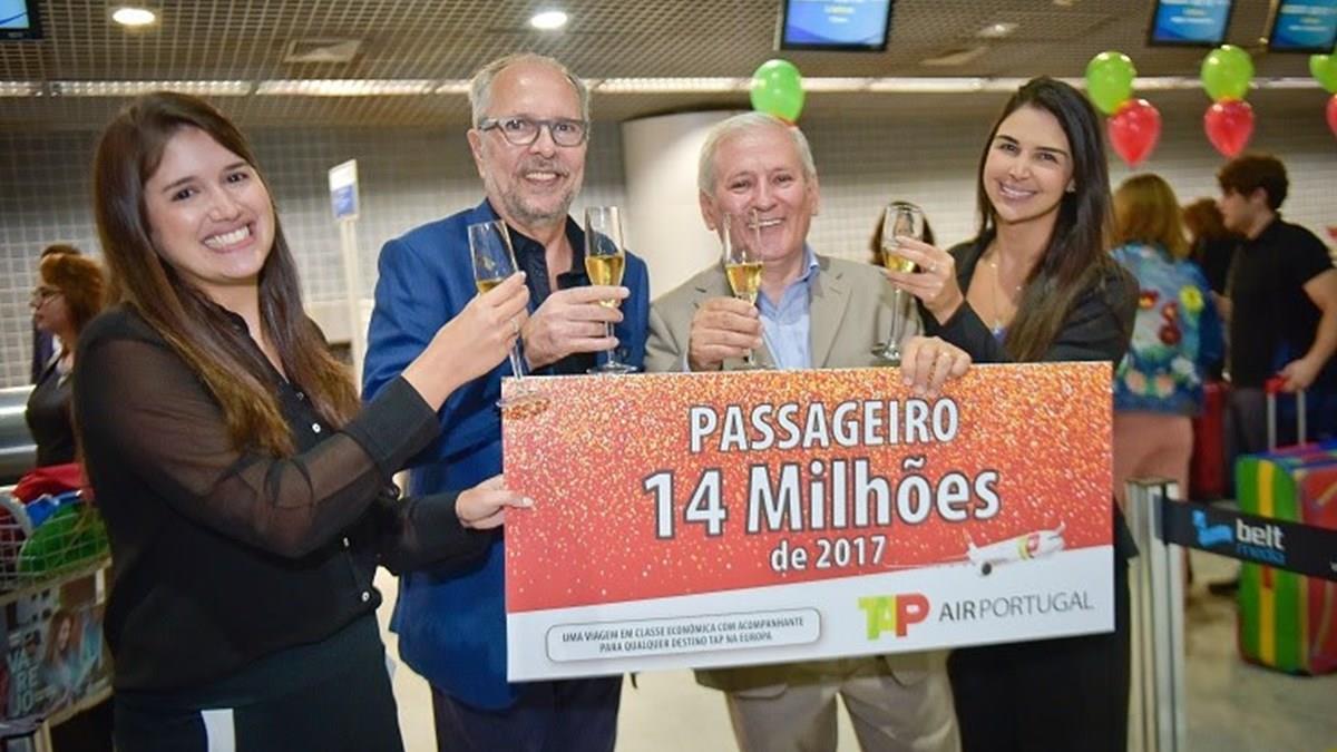 Para celebrar a conquista, a aérea surpreendeu o passageiro número 14 milhões deste ano: João Humberto Martorelli, que se preparava para embarcar hoje no Recife para Lisboa, foi contemplado com uma viagem para duas pessoas à Europa.
