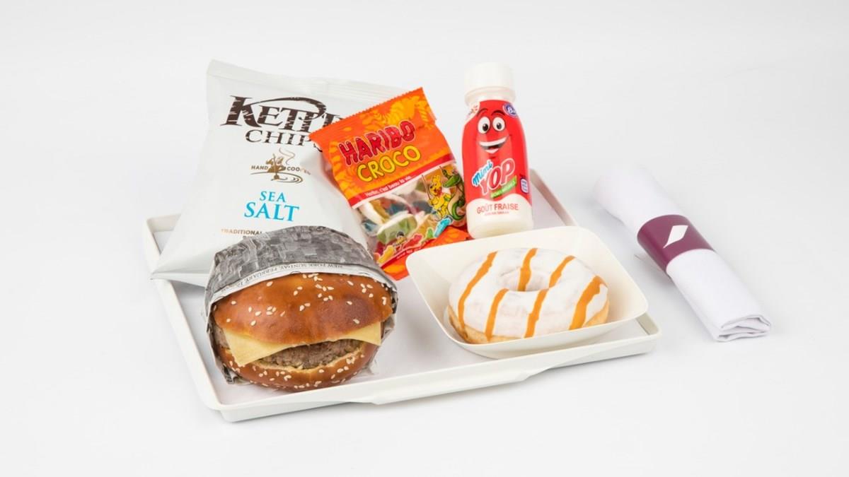 Com pratos principais compostos por hambúrguer com queijo Emmental e molho Bearnaise ou chips Kettle com sal marinho, os passageiros nas cabines Economy e Premium Economy terão ainda outros quatro menus à la carte como alternativa ao padrão oferecido a bordo: Le Marché de Jean Imbert, Une Sélection LeNôtre, Océan e Tradition.
