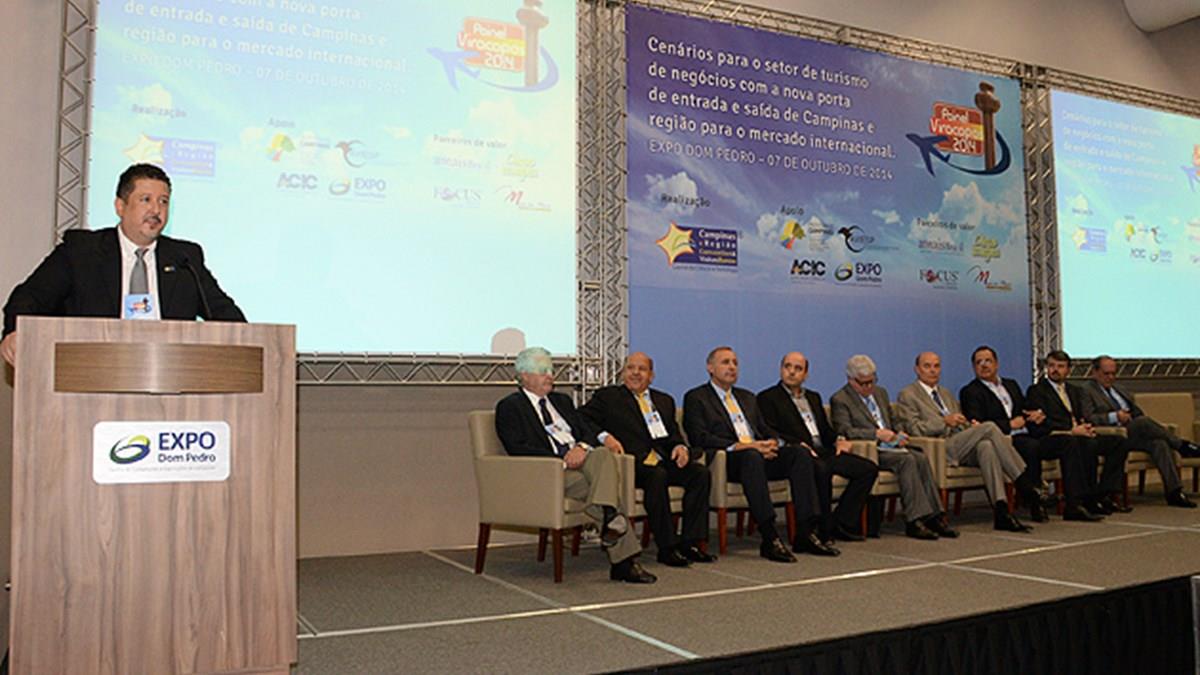 O trade de Campinas reuniu-se nesta manhã no Expo Dom Pedro, novo espaço de convenções da região, para debater o novo momento do Aeroporto de Viracopos, especialmente com os novos voos internacionais da Azul, American Airlines e Copa, que somam-se ao da Tap.