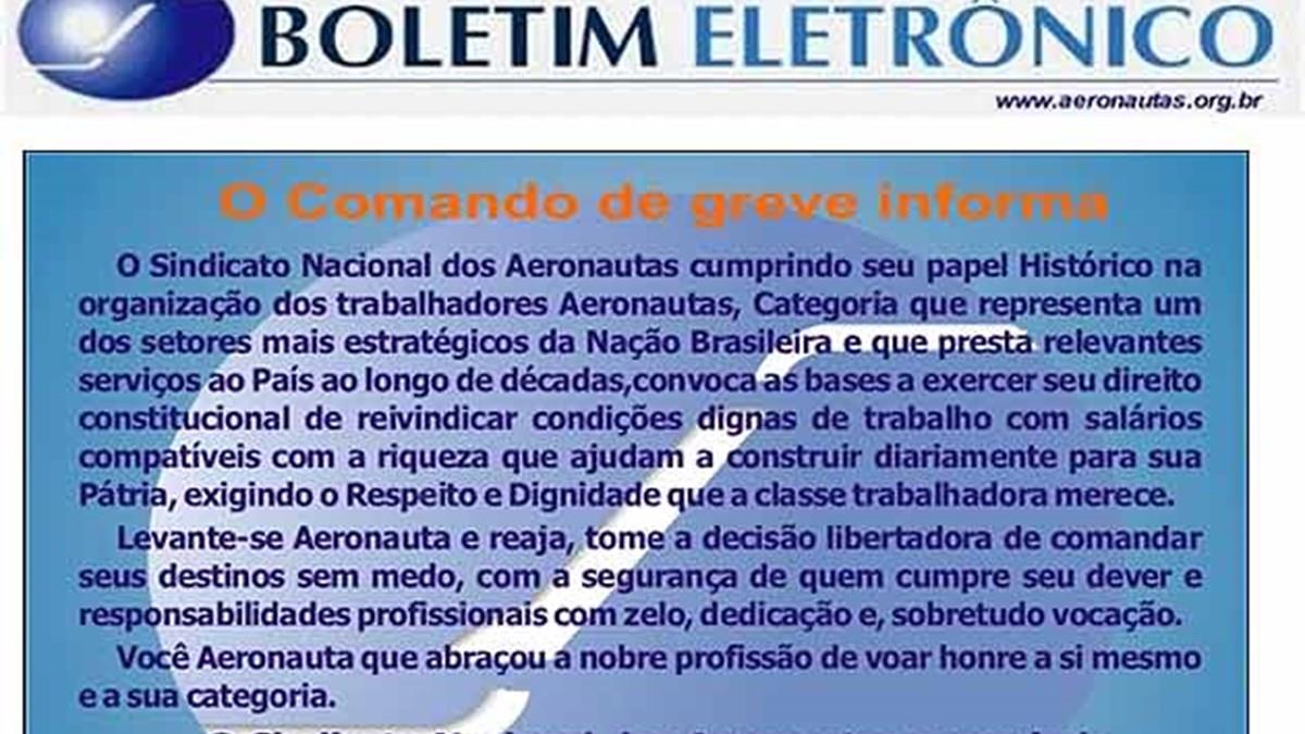 O comunicado diz também: “Levante-se aeronauta e reaja, tome a decisão libertaodra de comandar seus destinos sem medo, com a segurança de quem cumpre seu dever e responsabilidades profissionais com zelo, dedicação e, sobretudo, vocação”.