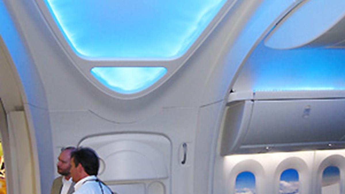 O projeto do 787 focou prioritariamente no conforto do passageiro, não descuidando das questões relacionadas ao meio ambiente e também à eficiência de sua performance. A réplica em tamanho real impressiona, não só pelo tamanho, mas principalmente pela iluminação e as cores. Está em exposição com dois assentos de business. A configuração escolhida pela Continental será de 36 assentos em business e 192 em econômica. Na business serão filas de 2-2-2, já na econômica serão 3-3-3.