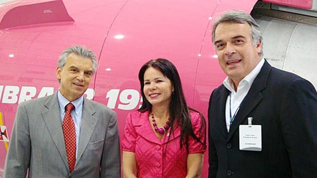 O presidente da Azul Linhas Aéreas, Pedro Janot, esteve hoje no lançamento do avião que foi pintado de rosa, em parceria com a Embraer, em prol da campanha da Federação Brasileira de Instituições Filantrópicas de Apoio a Saúde da Mama (Femama), entrará em operação.