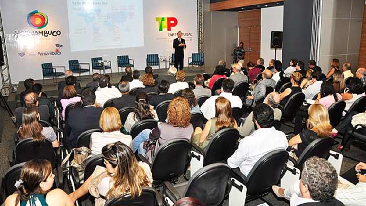 O vice-presidente executivo da Tap, Luiz da Gama Mór, realizou hoje uma palestra para o trade turístico de Pernambuco, cerca de 100 pessoas. O tema do discurso foi A Tap como alavanca do turismo para o Nordeste.