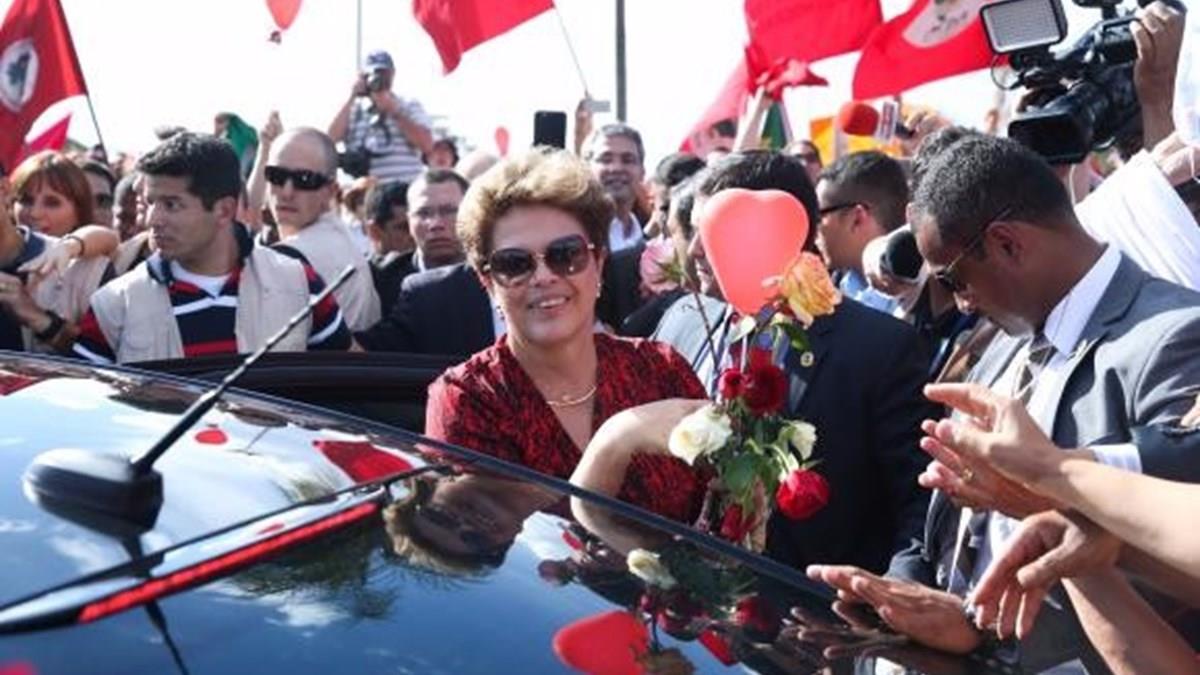 Antes de seguir viagem, a petista desceu do carro para cumprimentar as centenas de pessoas, em sua maioria, mulheres, que aguardavam desde cedo em frente ao palácio para se despedir. Quando Dilma passou, pétalas de rosas foram jogadas em sua direção como sinal de apoio.