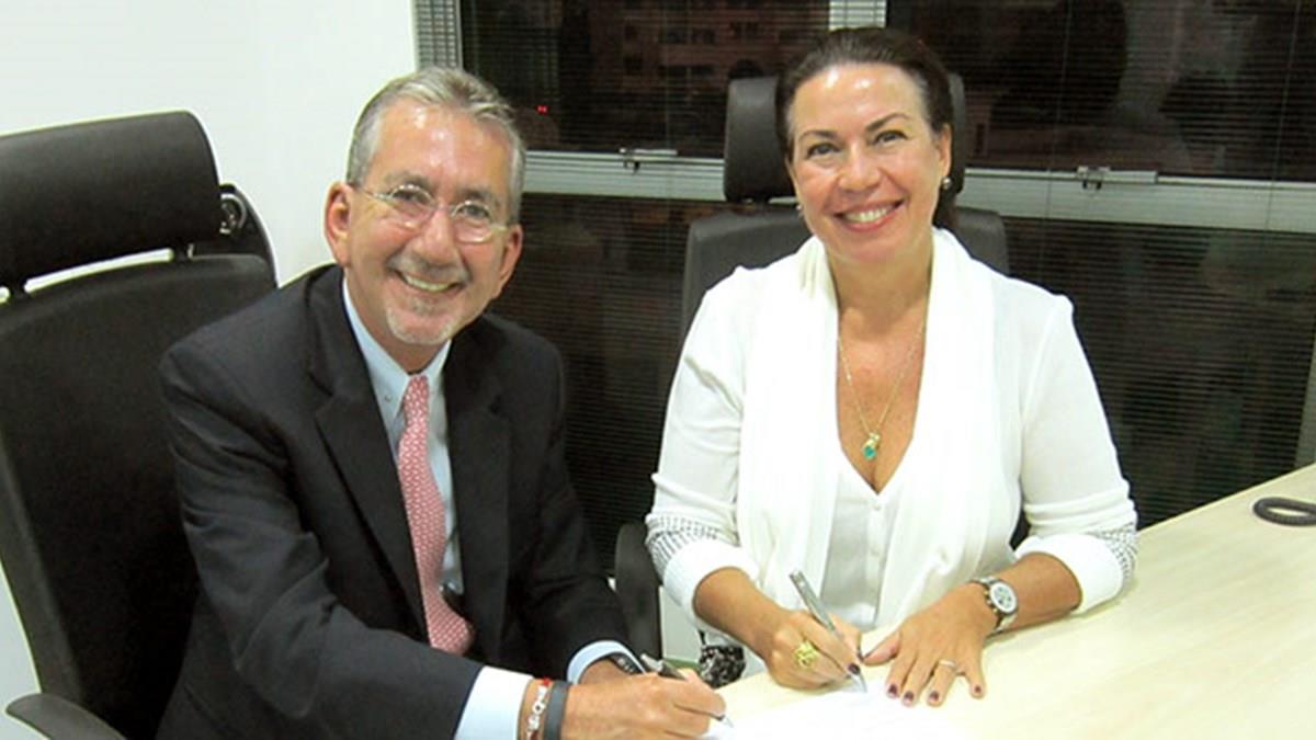 Beto Santos, presidente do grupo Esferatur, e Solange Vabo, presidente do Reserve, acabam de anunciar a assinatura de parceria comercial entre o consolidador e o sistema de gestão de viagens corporativas.