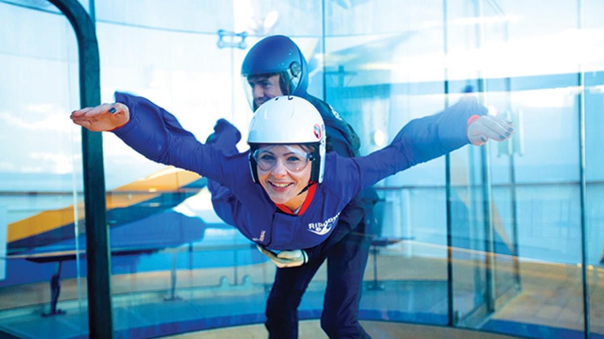 Um dos destaques do Quantum of the Seas, mais novo navio (e também nova classe de embarcações) da Royal Caribbean, são as atrações inclusas no pacote, como a gôndola North Star, o já conhecido simulador de surfe (Flow Rider) e o Ripcord by I-Fly, um simulador de paraquedismo. Não se paga a mais para