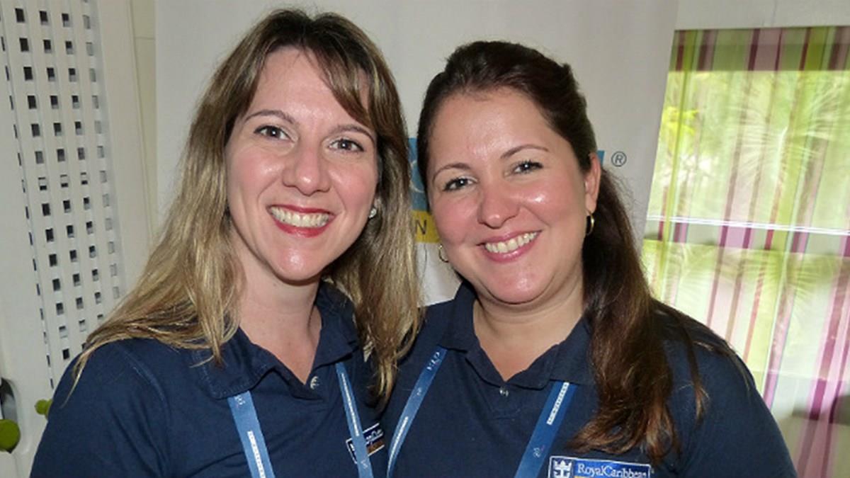 ITAPARICA (BA) – As executivas da Royal Caribbean, Elisa Gonzalez e Rosana Tassinari, estão destacando, no Workshop Visual, algumas inovações dos cruzeiros da armadora.