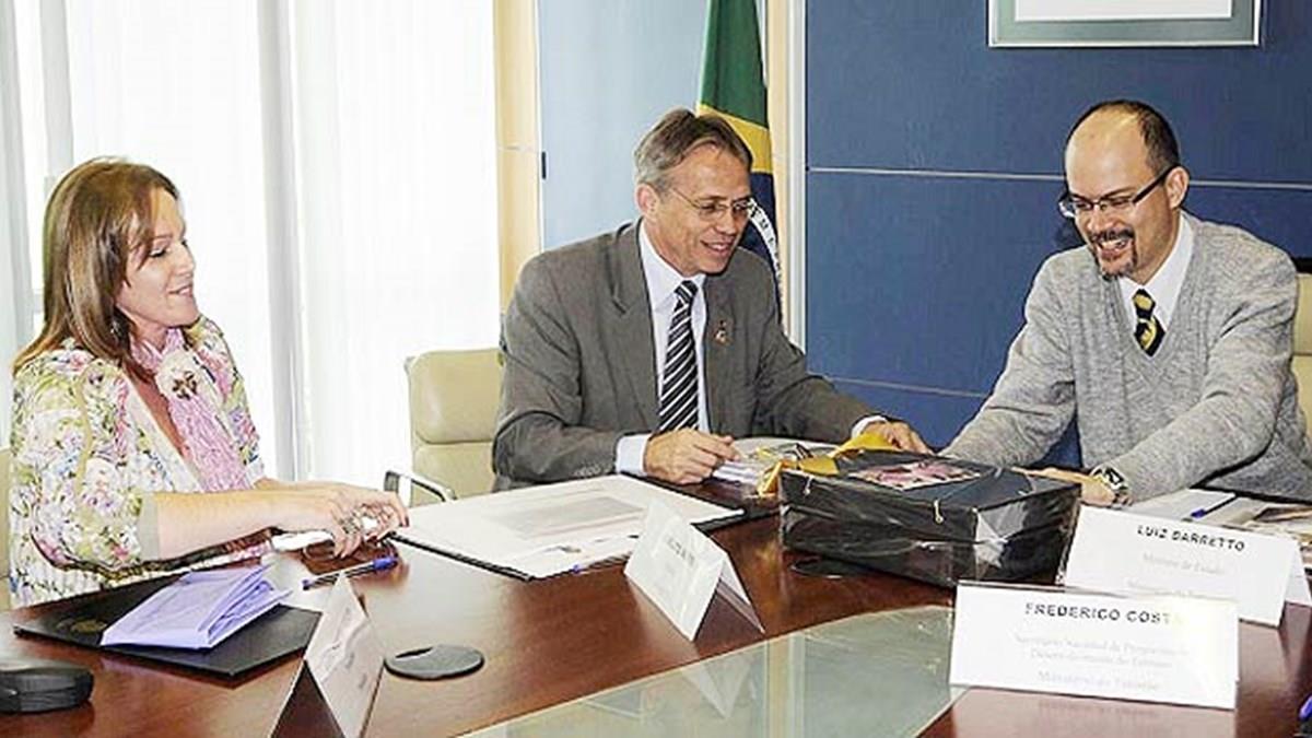O prefeito de Joinville (SC), Carlito Merss, e a presidente da Fundação de Promoção e Planejamento Turístico de Joinville (Promotur), Maria Ivonete Peixer da Silva, se reuniram com o ministro do Turismo, Luiz Barretto. Objetivo: entregar ao ministro o projeto do Complexo Turístico da Expoville