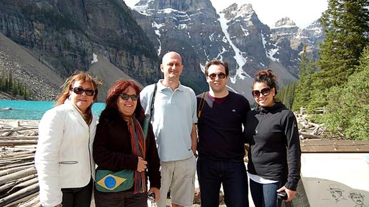 O terceiro dia dos operadores foi marcado pela visita ao Sulphur Mountain Gondola, um local onde é possível realizar eventos e ter uma vista fantática da cidade de Banff. “Isto é um diferencial para quem vende grupos de incentivo ou quer um coquetel de boas vindas para grupos”, explicou a diretora de Desenvolvimento do Brewster, Tanya Chamberland. Porém, antes de conhecer um novo produto que pode ser comercializado para os brasileiros, o grupo fez uma parada para fotos no Ten Pics, conjunto de dez montanhas à beira do Moraine Lake.