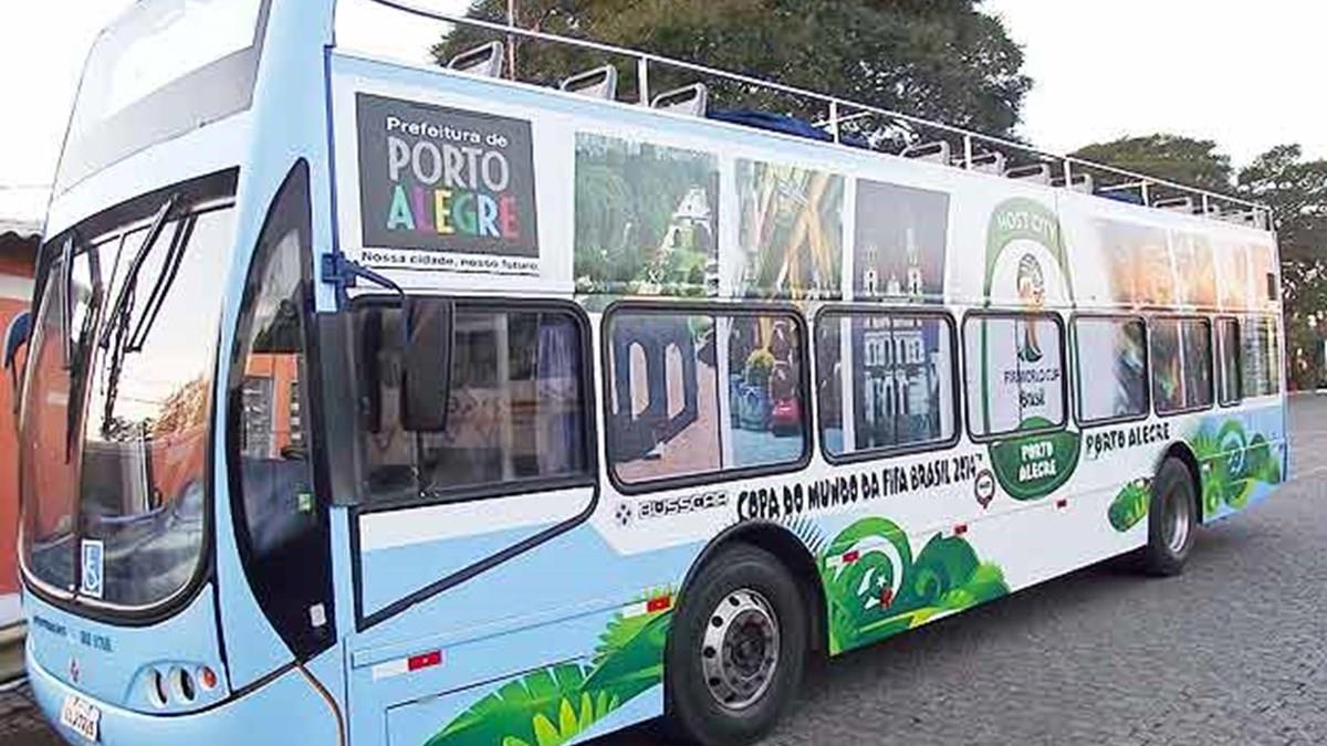 O ônibus Linha Turismo, em Porto Alegre, volta a circular hoje nos roteiros turísticos regulares e trará uma novidade. No lugar da tradicional pintura externa, o veículo exibirá por onde passar pela cidade um visual temático alusivo à Copa do Mundo de 2014. A informação é da Prefeitura Municipal de Porto Alegre.