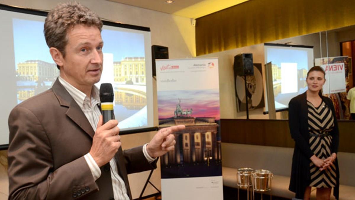 Pelo segundo ano consecutivo, as capitais Berlim (Alemanha) e Viena (Áustria) promovem uma ação de promoção conjunta no Brasil. Olívia Divjak, do Vienna Tourist Board, e Christian Tänzler, do Visit Berlin, reuniram-se com operadores e jornalistas cariocas na semana passada e, há pouco, apresentaram novidades e informações dos destinos à imprensa de São Paulo – eles ainda passarão por Porto Alegre e Novo Hamburgo (RS).