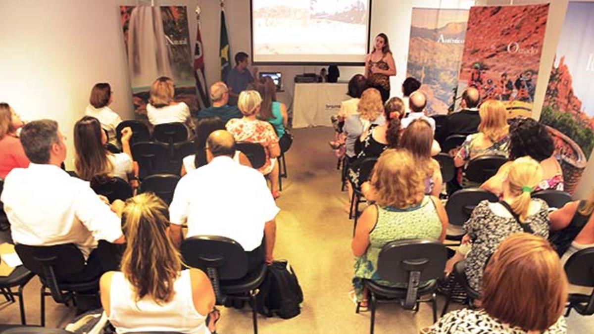Na agenda das representantes do destino Arizona (Estados Unidos) no Brasil não poderia deixar de existir o encontro com os agentes de viagens. O evento aconteceu há pouco no Espaço Braztoa, onde a gerente para o Brasil, Mara Pessoa, explicou detalhadamente as características de cada cidade turística