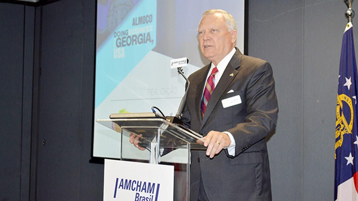 O governador do estado norte-americano da Geórgia, Nathan Deal, está no Brasil em missão comercial. Hoje ele se reuniu com empresários locais na Amcham de São Paulo, e falou sobre a importância das relações corporativas e turísticas entre o País e o estado cuja principal cidade é Atlanta.