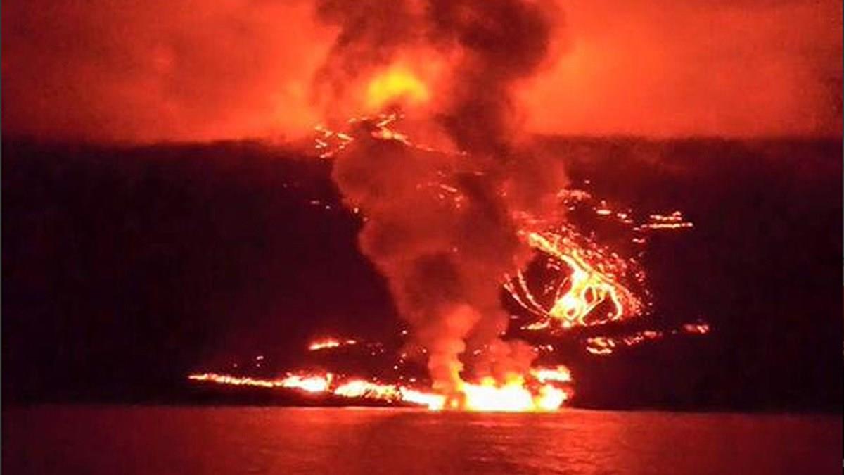 Vídeo: lava de vulcão do Equador chega ao oceano