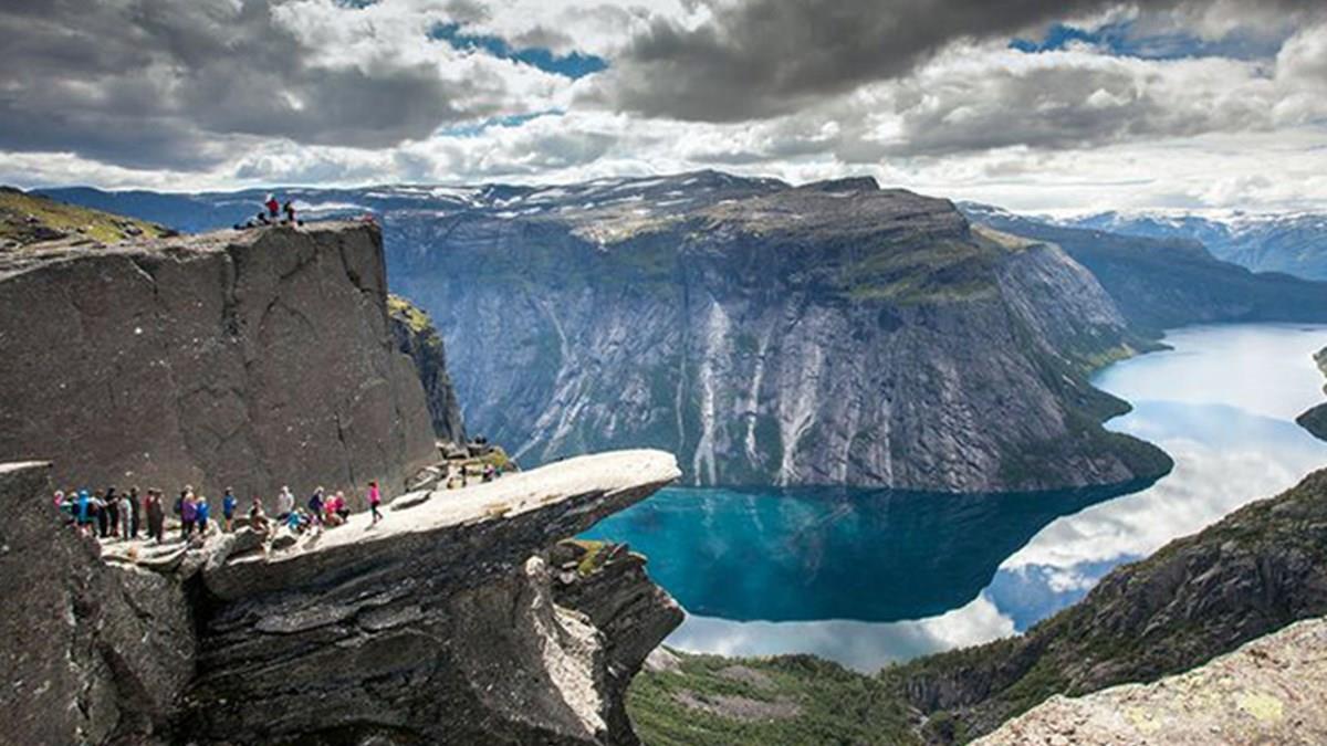 O que não falta são vistas panorâmicas nas caminhadas pela Noruega, e uma da mais belas é do penhasco de suspensão Trolltunga (traduzido para língua do Troll, por se parecer com uma língua esticada). O local está 1.100 metros acima do nível do mar e se projeta para fora das formações rochosas ao redor, balançando a 700 metros sobre o Lago Ringedalsvatnet como se fosse uma borda. É recomendado que esse passeio seja feito entre junho e setembro – quando está mais calor. Além disso, requer bom condicionamento físico, preparação para mudanças climáticas repentinas, um mapa e uma bússola, água e alimentos suficientes para durar a longa caminhada (que pode durar de oito à dez horas). Os viajantes são aconselhados a iniciar o trajeto logo no começo do dia e são avisados que não há sinal de celular. Todo esse esforço é pago pelas fotos mais lindas e por ser uma das paisagens mais exuberantes que você irá contemplar na Noruega. Outra opção emocionante é a estreita Besseggen de Ridge no parque nacional de Jotunheimen, considerado uma das melhores caminhadas do mundo. São cerca de 16 quilômetros pela crista rochosa que divide os lagos Gjende e Bessvatnet Lake, onde está uma das vistas mais notáveis da Terra.