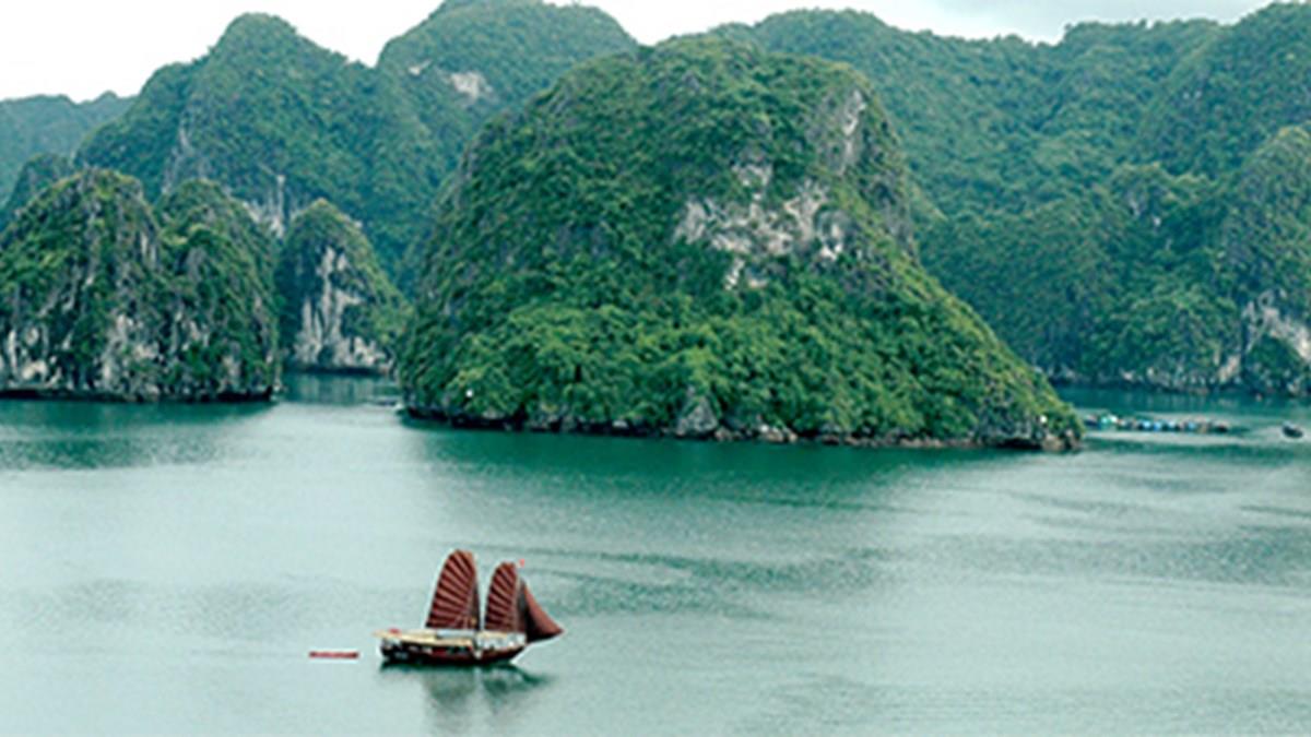 A melhor maneira de atravessar as águas do Patrimônio Mundial de Halong Bay é em um tradicional barco junk vietnamita. Mais de três mil ilhas de montanhas de calcário se projetam no mar esmeralda, que ainda conta com cavernas escondidas, grutas, praias e formações rochosas prontas para serem exploradas. Há tanto a opção de passeios de um dia de duração como você pode escolher as viagens noturnas a bordo desses tradicionais barcos de madeira com lindas velas.