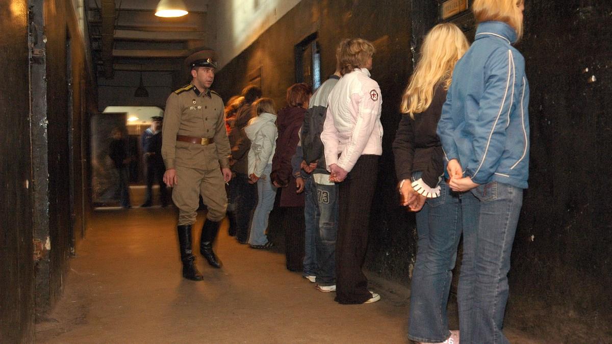 Em um dos tours oferecidos para os visitantes, os visitantes são interrogados em uma sala escura e recebem ordens de homens vestidos como os soldados da época.