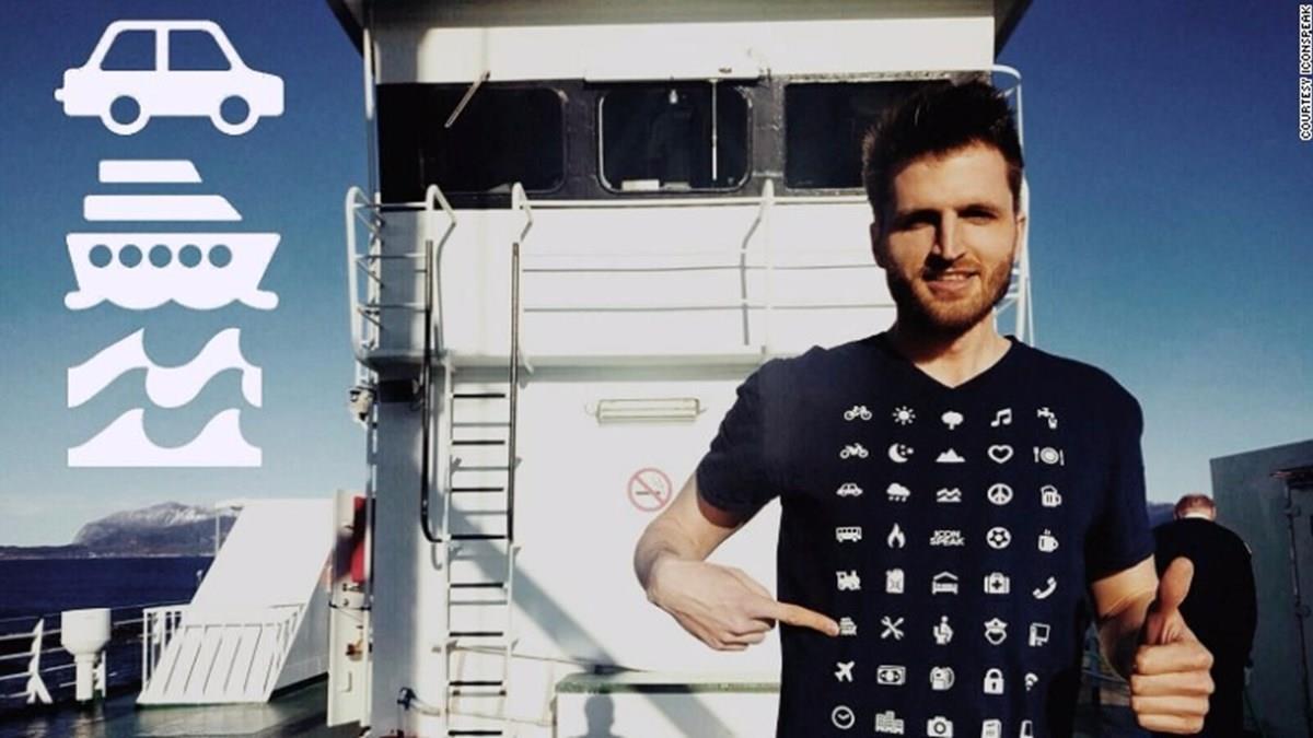 Três jovens suíços criaram uma camiseta que promete resolver boa parte dos problemas de comunicação encontrados pelos viajantes. A camiseta conta com 40 pictogramas universais, para os quais os turistas podem apontar quando querem pedir alguma informação e não sabem como fazê-lo.