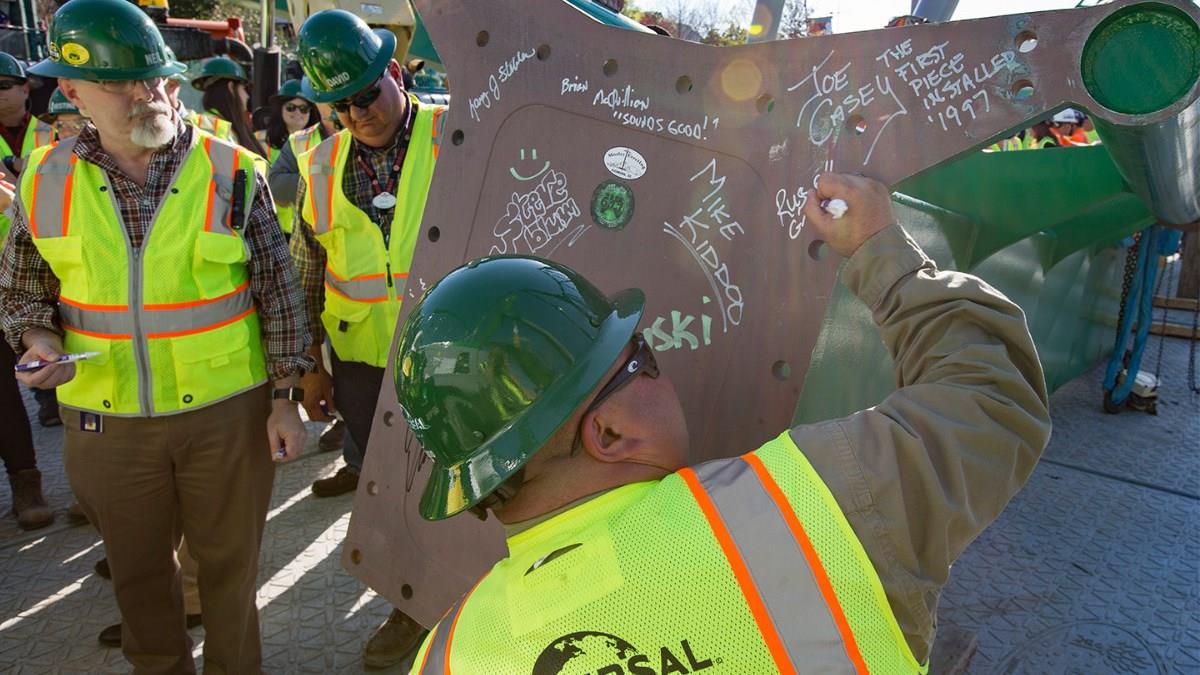 Para marcar esse momento, toda a equipe de engenharia assinou a peça antes da fixação. A reabertura da montanha russa deve acontecer no verão norte-americano deste ano.