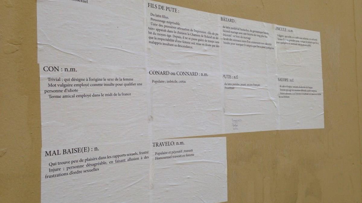 Ao encontrar sulfites com palavrões franceses, e seus respectivos significados, em um muro da vizinhança, Silvia passou a encarar o assunto como questão de educação. “Enquanto lia, pensei: meu filho pré-adolescente tem que ler estas palavras, ele tem que ter claro em sua mente a que se refere caso venha a pronunciá-las”, reflete.
