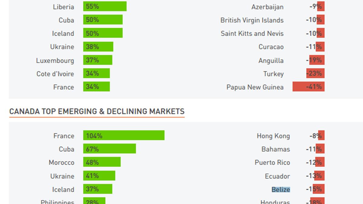 Viajantes dos Estados Unidos e do Canadá pretendem gastar, esteano, US$ 6,4 mil e US$ 8,4 mil em viagens, respectivamente, de acordo com pesquisa feita pela empresa Sojern’s. O valor supera o da média global, que é de US$ 5,1mil. Enquanto os viajantes dos Estados Unidos r