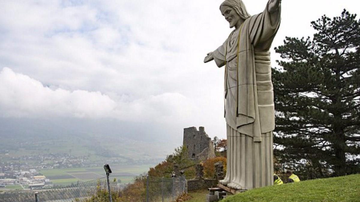 A estátua, portando tem agora novo local, a 243 metros acima do vale e deve seguir intacta pelos próximos cinco anos, segundo o jornal suíço Tagblat.