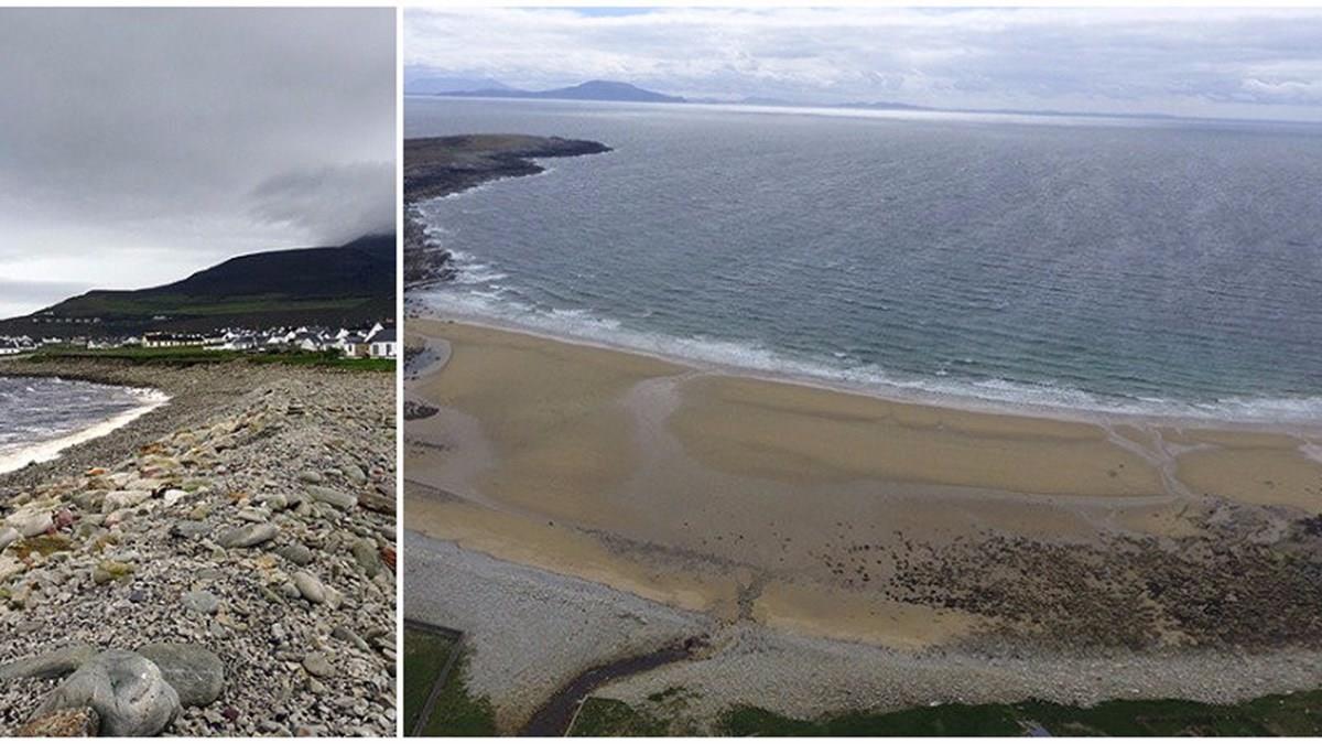 Segundo o Turismo de Achill, o caso foi provocado por movimentações da maré e do oceano, que depositaram milhares de toneladas de areia no lugar antes rochoso. “Bem a tempo da temporada de verão”, citou ainda o comunicado no site do Turismo da ilha.