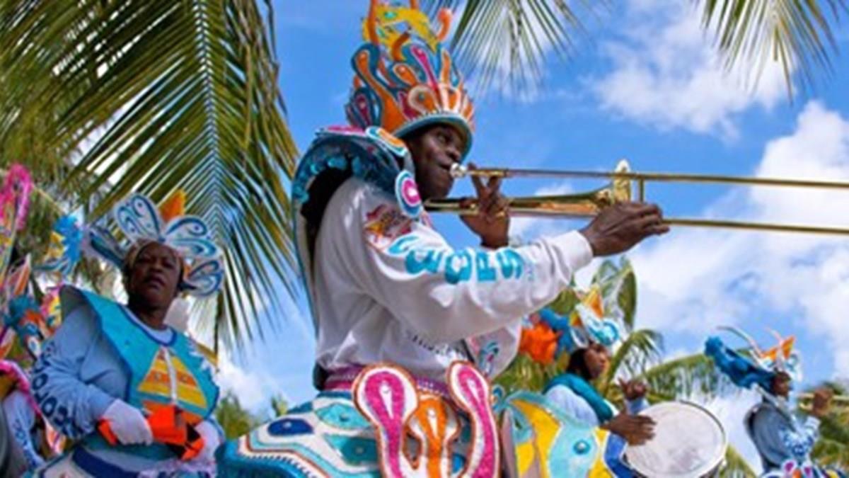 Local fantasiado para o desfile do Junkanoo