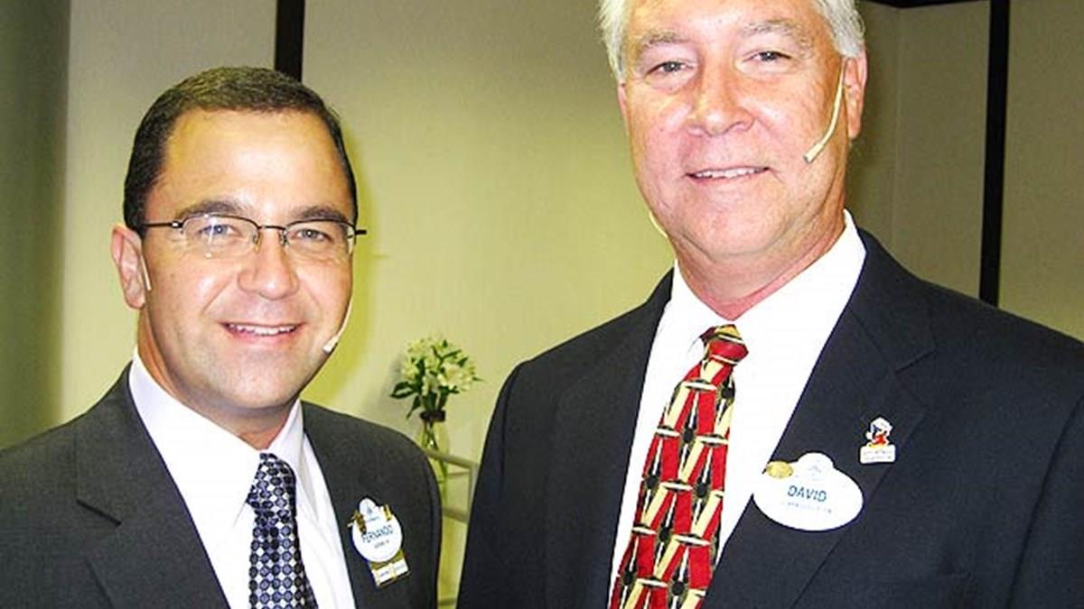 David Mulvey e Fernando Beltran, os professores que conduzem os seminários, vieram da sede do Instituto Disney em Orlando, Florida. Abordam neste primeiro dia as "chaves" da Disney para a Excelência em Negócios.