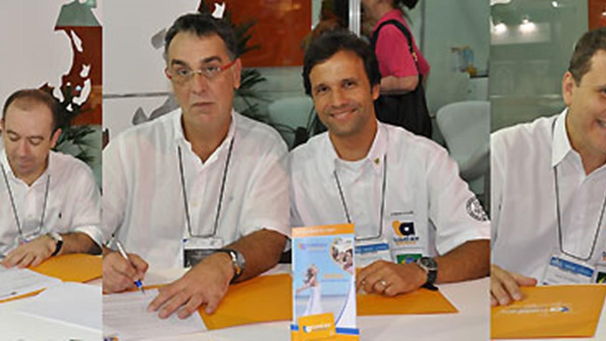 Abreutur, Ambiental e Designer. Essas três operadoras acabam de fechar um acordo de responsabilidade civil (RC Profissional) com a Travel Ace. Os contratos foram assinados durante a Feira das Américas, como mostra a foto acima, com Ronnie Corrêa, José Zuquim, Olga Arima.