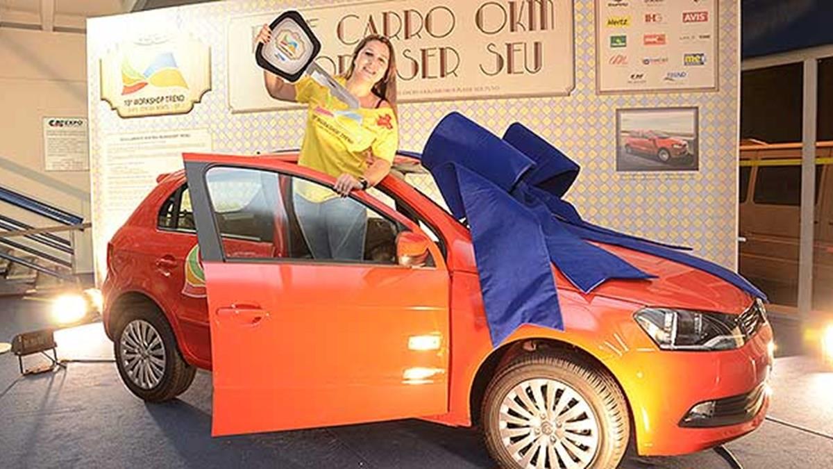 A agente de viagens Cristiane Marinho, da agência Estação Férias Viagens, de Jandira (SP), levou pra casa um Gol OKM sorteado agora pelo vice-presidente comercial da Trend, Daniel Santos