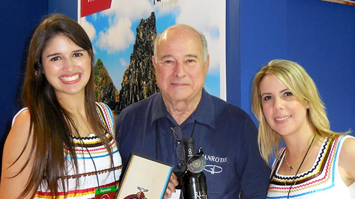 Maria Cláudia de Paula e Danielly Aguiar, da Empetur, visitaram há pouco o estande da PANROTAS no Festuris Gramado para homenagear a PANROTAS e o seu presidente, Guillermo Alcorta, pela parceria e pelos 40 anos da editora. “É um presente de fim de ano para agradecer a parceria. Entregamos ao Guillermo um vinho da marca Rio Sol, que é produzido no Vale do São Francisco, em Petrolina. Além do vinho, também entregamos um bolo de rolo com uma caixa especial da nossa campanha do Ariano Suassuna”, disse Maria Cláudia, que também celebrou o aniversário da empresa. “O PANROTAS é a nossa fonte de informação. É uma ferramenta indispensável para o turismo e que norteia as nossas ações promocionais. É importante para o setor ter um veículo com essa importância que vocês têm”, concluiu a pernambucana.