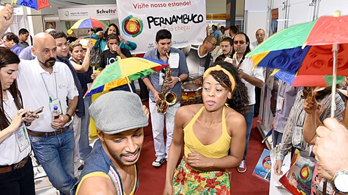 RIBEIRÃO PRETO (SP) - Ao longo de dois dias, a 19ª Avirrp aguarda cerca de 2,6 mil agentes de viagens de todo o País. São cerca de 140 expositores que exibem suas novidades e seus produtos no Centro de Convenções Taiwan. A Empetur realizou uma legítima ação pernambucana para os participantes da feira: dançarinos de frevo fizeram a festa pelo pavilhão.