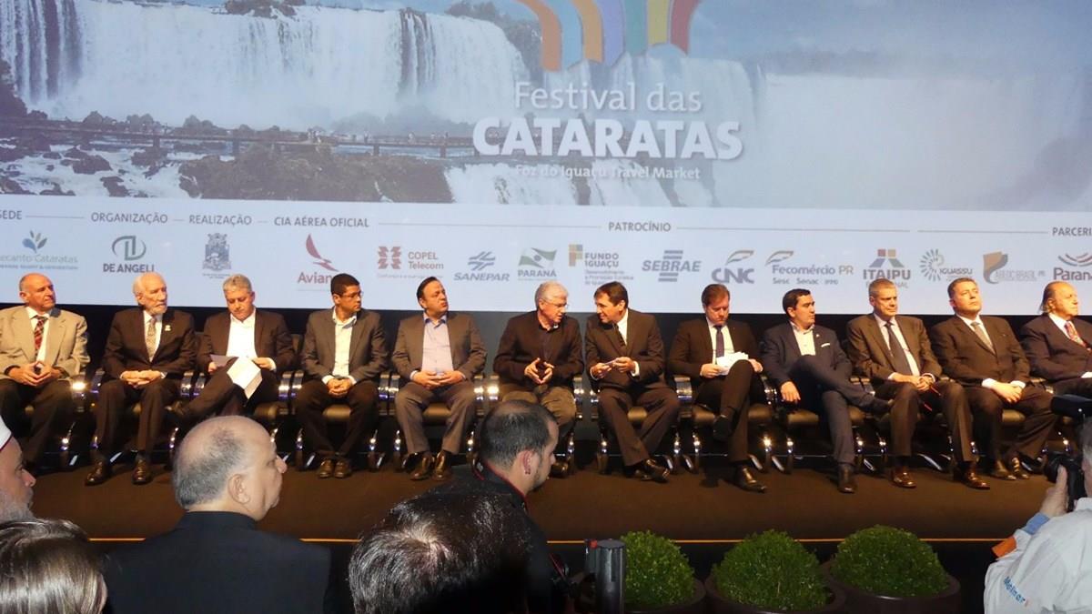 FOZ DO IGUAÇU (PR) – A 12ª edição do Festival das Cataratas, em Foz do Iguaçu (PR), começou oficialmente hoje (28) com a solenidade de abertura realizada no resort Recanto Cataratas. Autoridades como o Ministro do Turismo, Marx Beltrão, o prefeito da cidade, Chico Brasileiro, e o diretor-geral da Itaipu Binacional, Luiz Fernando Vianna, estiveram presentes.